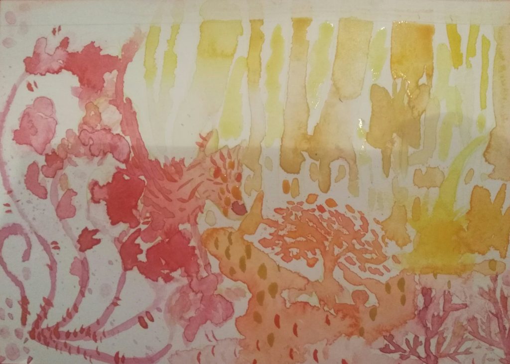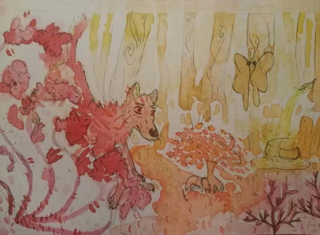 As you can see, I had done more watercolours, this was right after Star and I did our painting together. This is while I let my painting dry and before I went over it with a pen.