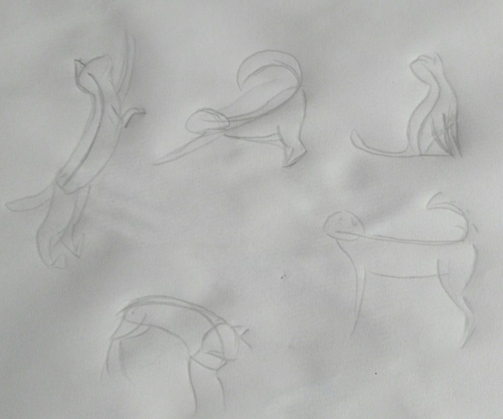 Here, we re-drew the bunch of cats from the last one, I used Oil Pastels to do these kitties. I am actually happy about these ones, especially the top middle that’s stretching out it’s paw, dunno why, but I like it.