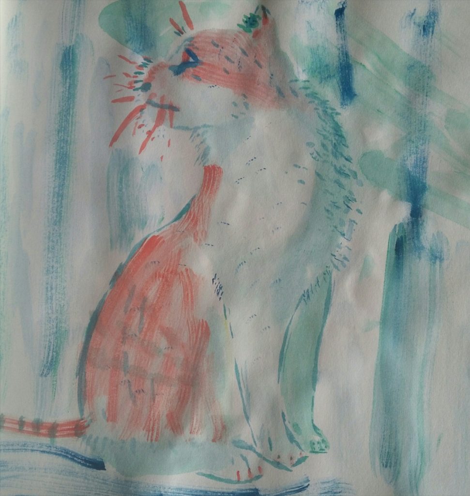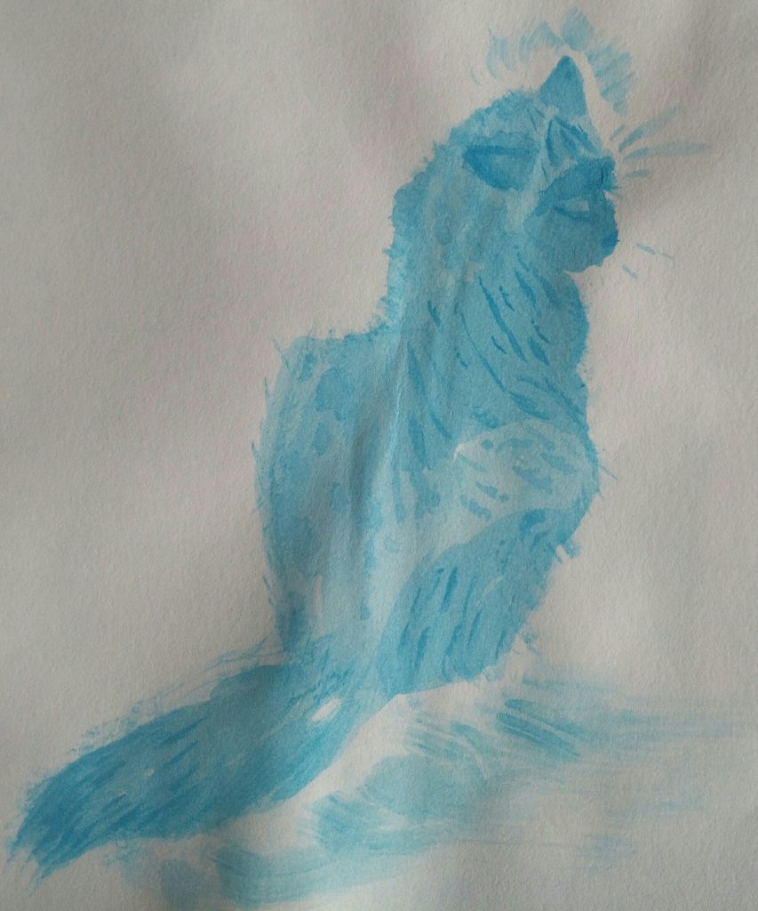 Then, I ran out of Watercolour papers but we weren’t done yet! So, I used my sketchbook, because I have done watercolour in it already, and it was alright. And I painted this beautiful Blue Cat, I’m really happy with her. Yes. Her. Why not?